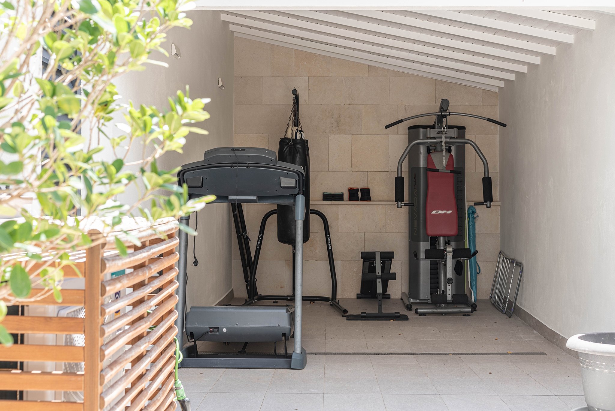 Den stora terrassen har sol hela dagen och erbjuder dessutom en tvättstuga, utedusch och ett gym under tak.