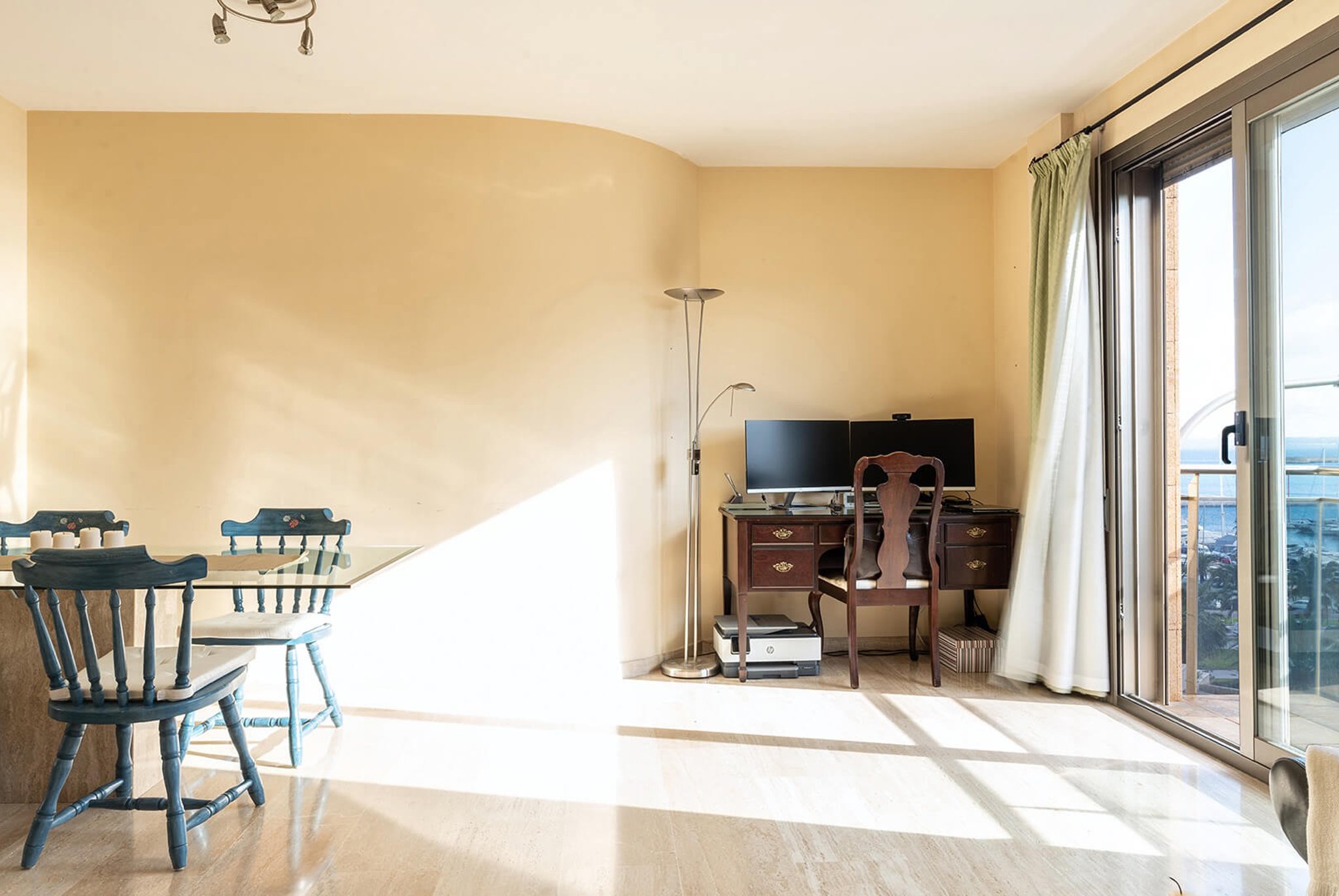 Ljus våning med fantastisk havsutsikt belägen i den gamla stadsdelen El Terreno, med närhet till både naturområde, vackra stränder och centrala Palma. Härifrån är det gångavstånd till Paseo Maritimo, Santa Catalina och Palma centrum. Det finns bra bussförbindelser till Palma och stränderna i Cala Major och Illetas.