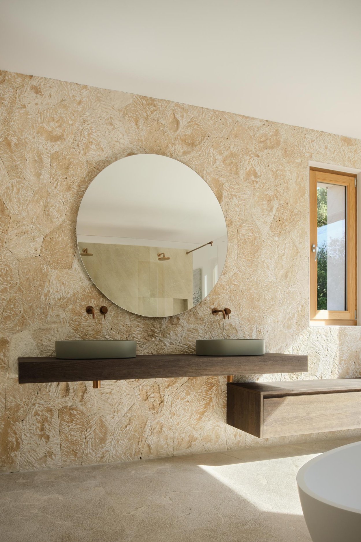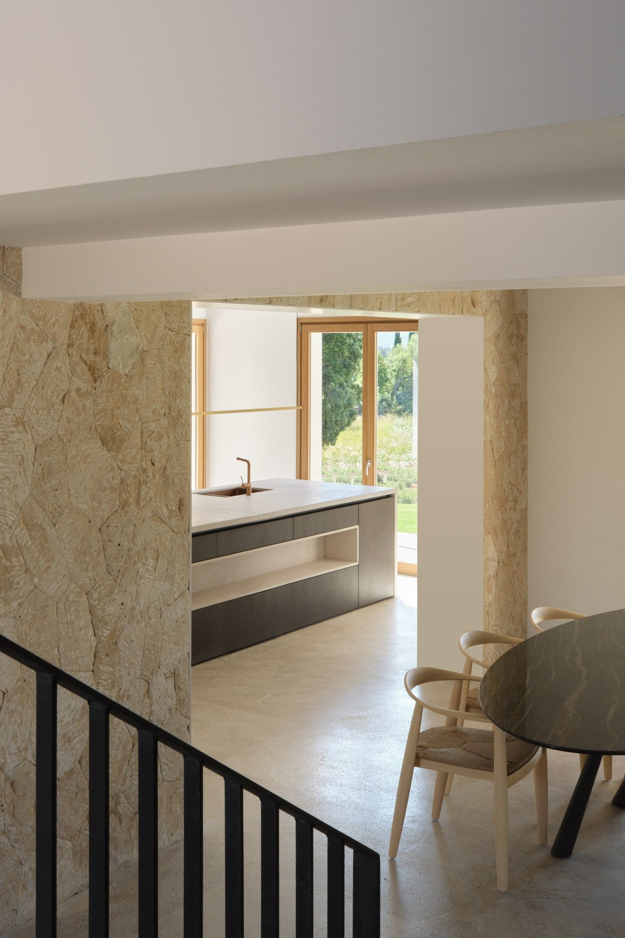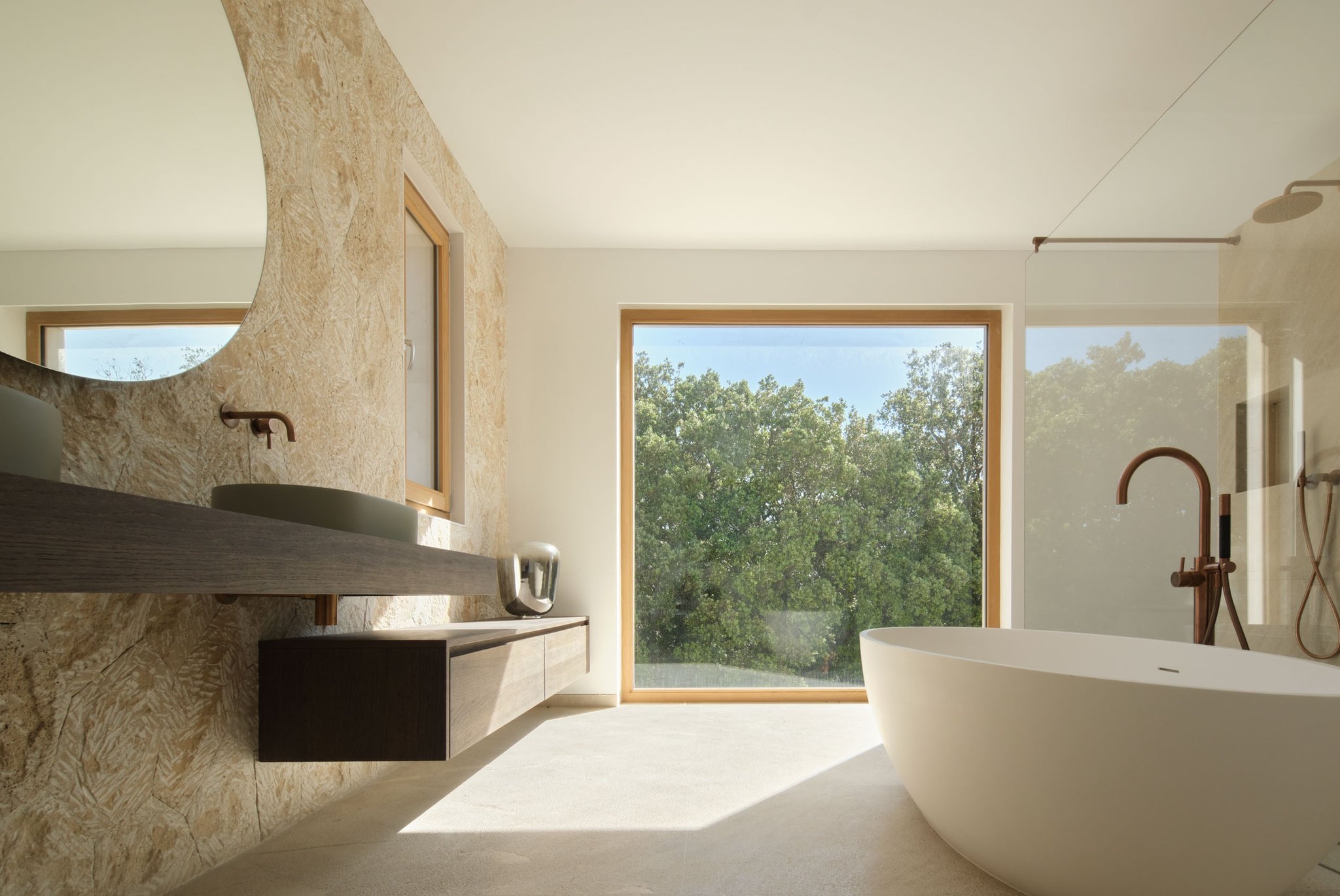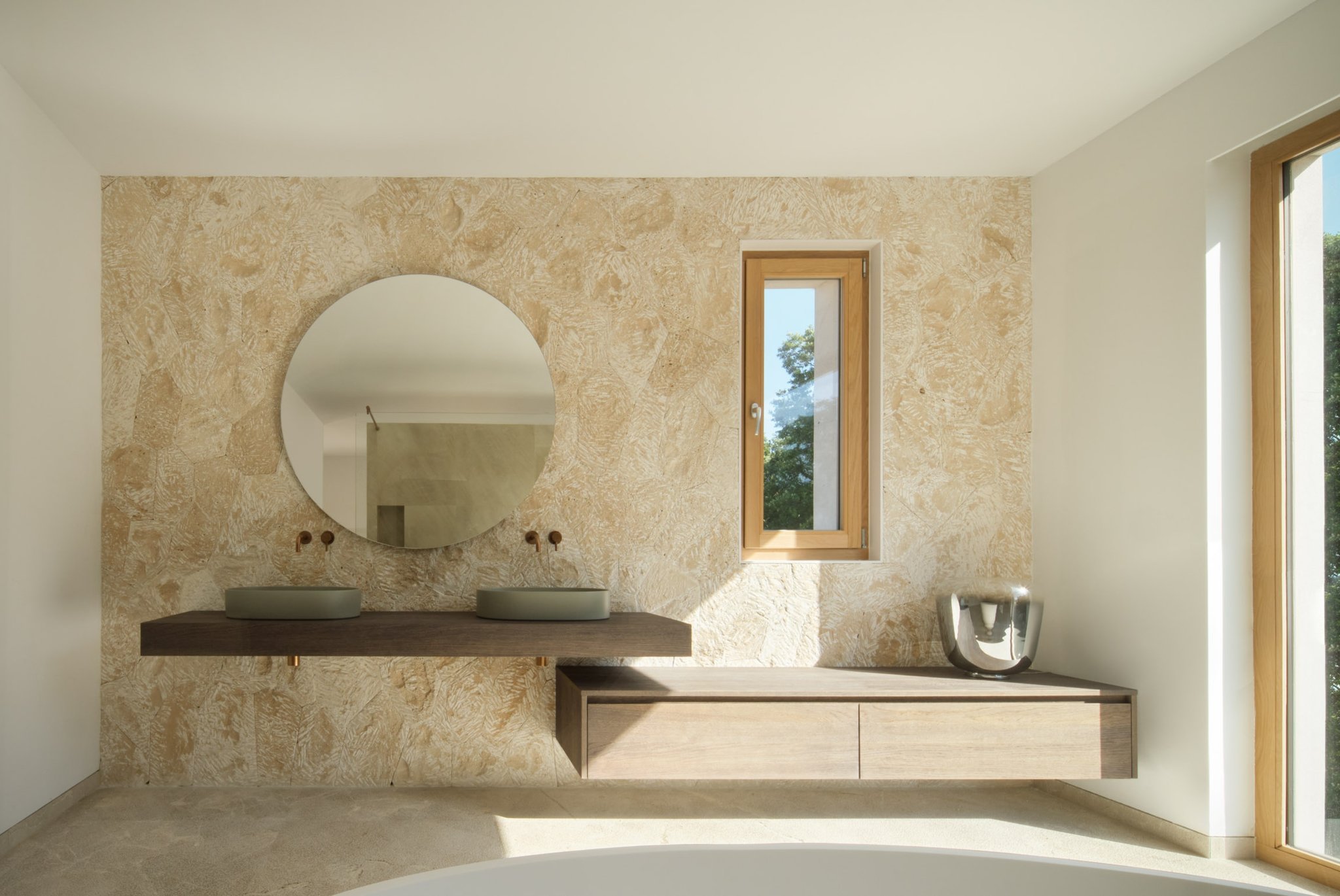 På första våningen finns förutom två en-suite sovrum även en lyxig mastersvit med walk in closet och bastu varifrån man har en magnifik utsikt över den omgivande landsbygden. Två av de tre sovrummen har direkt tillgång till de stora terrasserna med utsikt över trädgården och poolområdet. En källare i full storlek och med naturstensgolv ger möjlighet att skapa en mängd ytterligare användningsområden som en hemmabio, ett gym eller en vinkällare, etc. Villan är omgiven av en trädgård och pool som ramas in av Tramuntanabergen. De olika terrasserna, både öppna och med tak, har en underbar medelhavsvegetation som ger dem en speciell atmosfär av en lugna oaser.