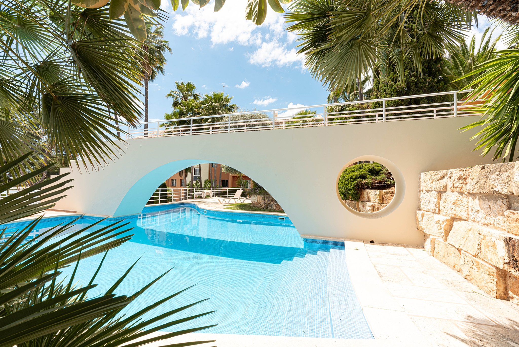 Lägenheten är en del av ett exklusivt bostadskomplex där de boende erbjuds tillgång till gemensamt poolområde, privat parkeringsplats och förråd. Detta boende är perfekt för dig som söker närhet till både stadsliv och kustliv, med enkel förbindelse till Palma centrum. Flera aktivitetscenter finns i närheten – inte minst golfbanan – och både stranden och kusten ligger inom promenadavstånd.