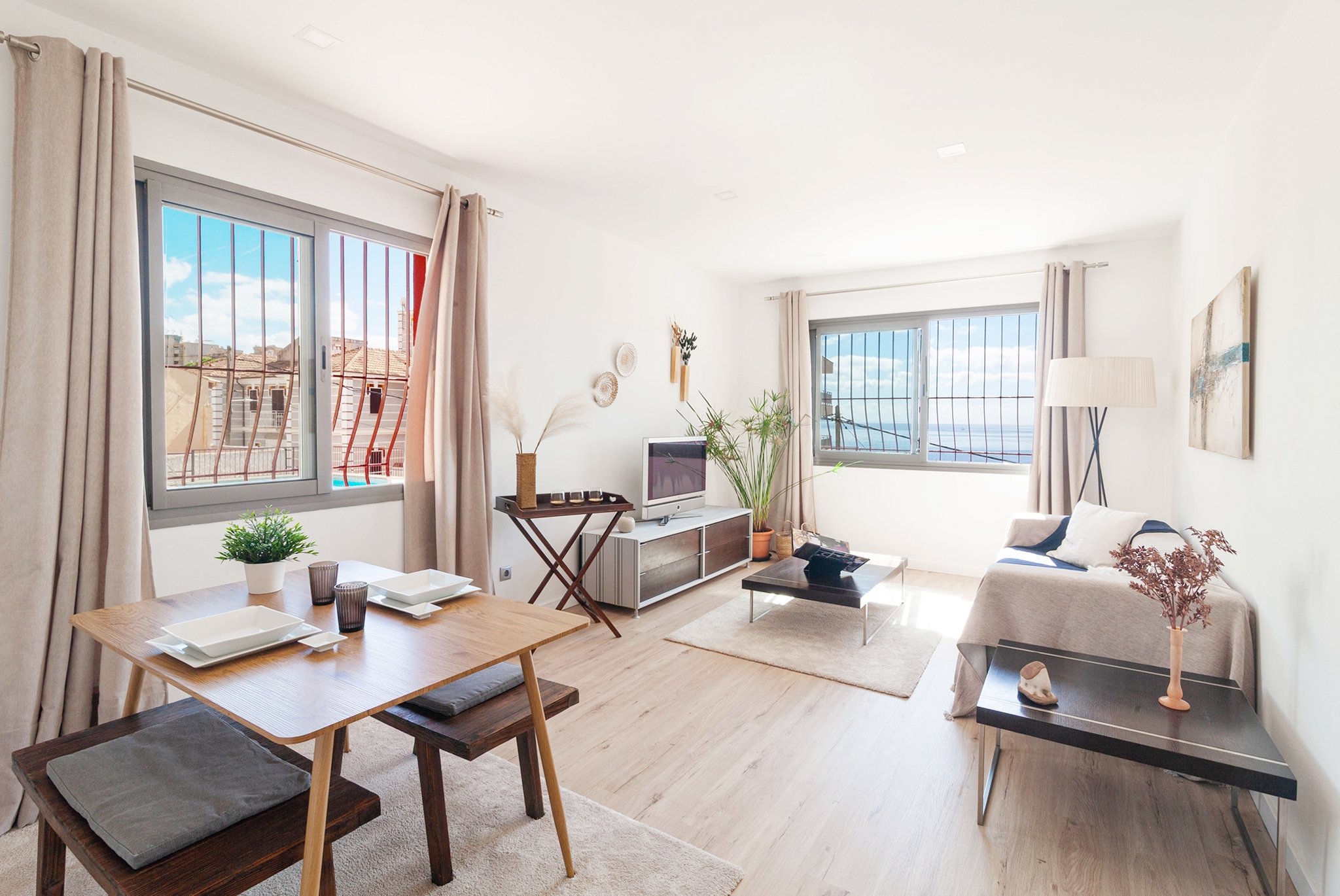 Denna nyrenoverade lägenhet ligger i San Agustín, strax utanför Palma. Här bor du på andra linjen från stranden, med närhet till restauranger, barer, aktivitetscenter och endast några minuters bilresa till Palmas centrum.