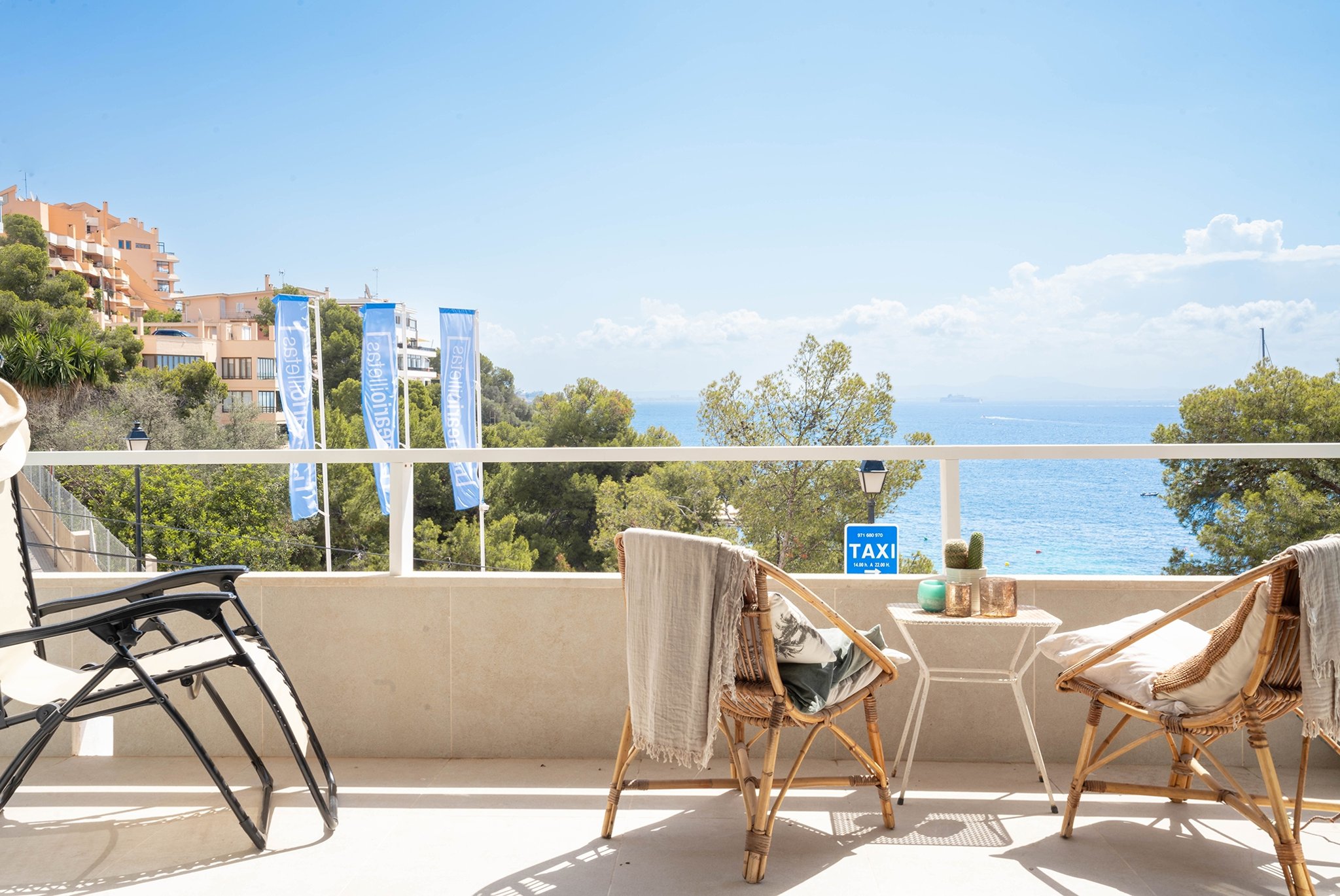 Denna mycket fina ljusa och helrenoverade lägenhet är belägen alldeles framför den omåttligt populära och vackra sandstranden i Illetas. Lägenheten erbjuder en helt fantastisk havsutsikt då den ligger i första linjen.