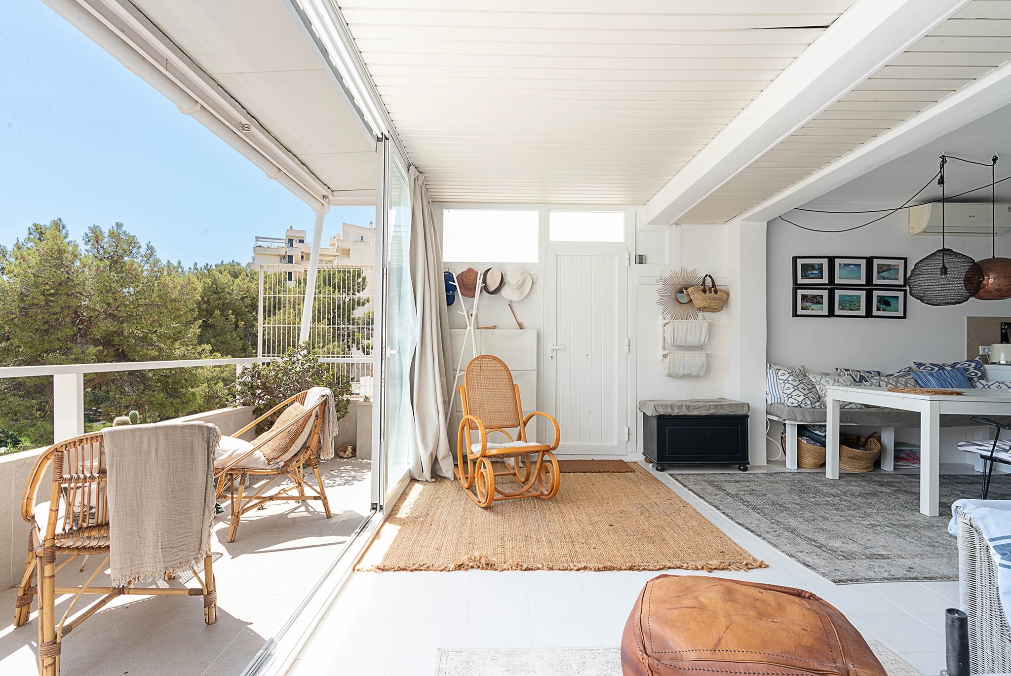 Våningen som totalrenoverade 2018 har en boyta på 71 m2 en öppen planlösning med kök och vardagsrum med utgång till den härliga terrassen. Terrassen har en yta på 10 m2 och vetter mot söder och har en otroligt fin utsikt över stranden och havet! Det finns två sovrum, varav ett är dubbel sovrum och ett enkelt och ett badrum som har golvvärme. Lägenheten säljs fullt möblerad och med alla vitvaror.