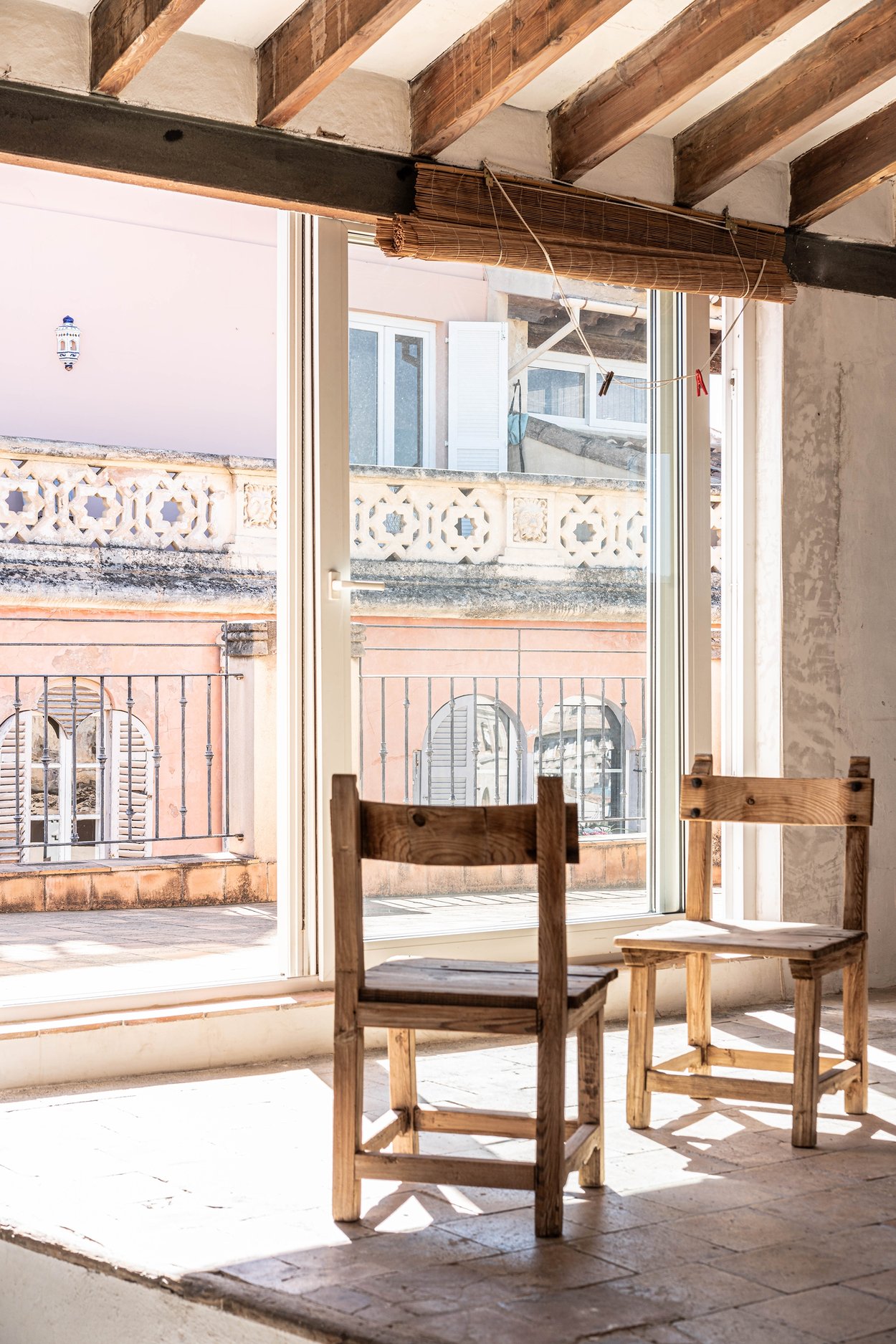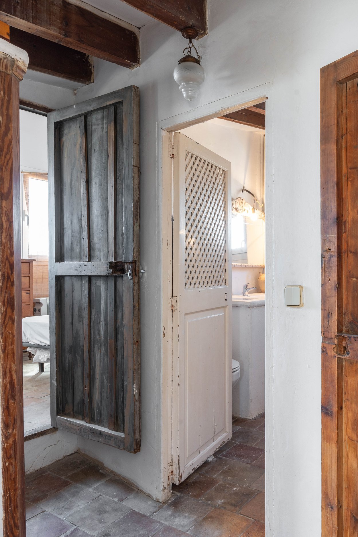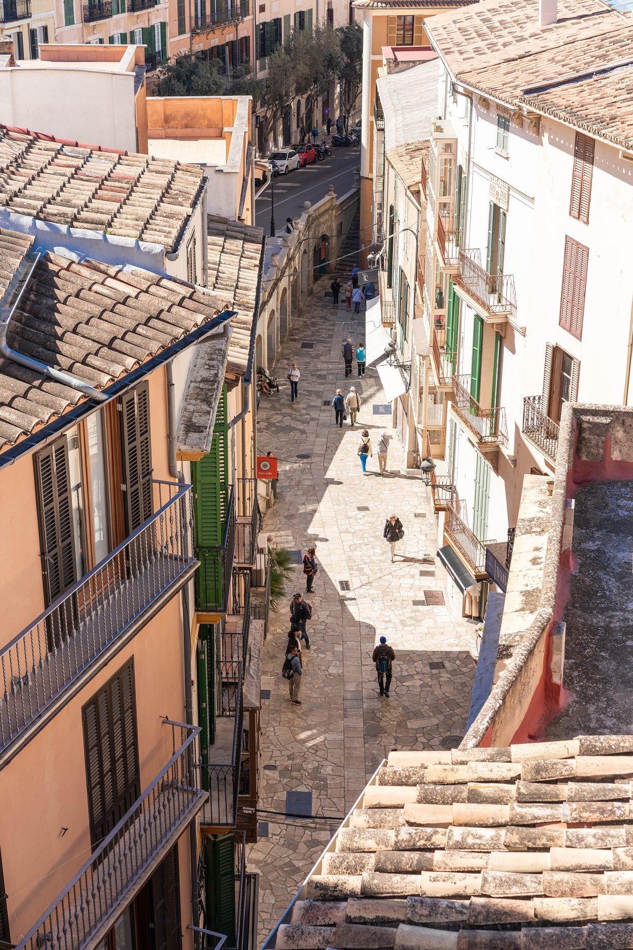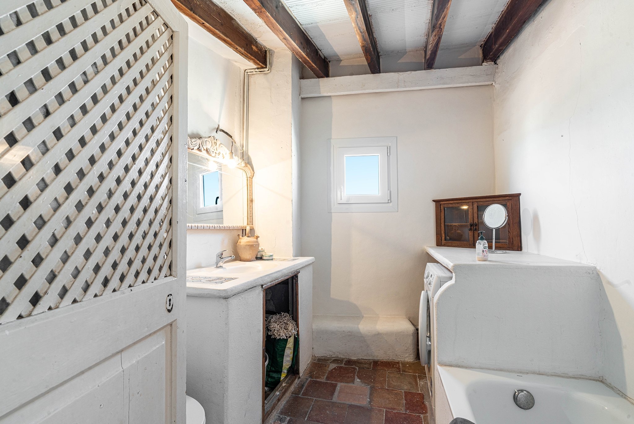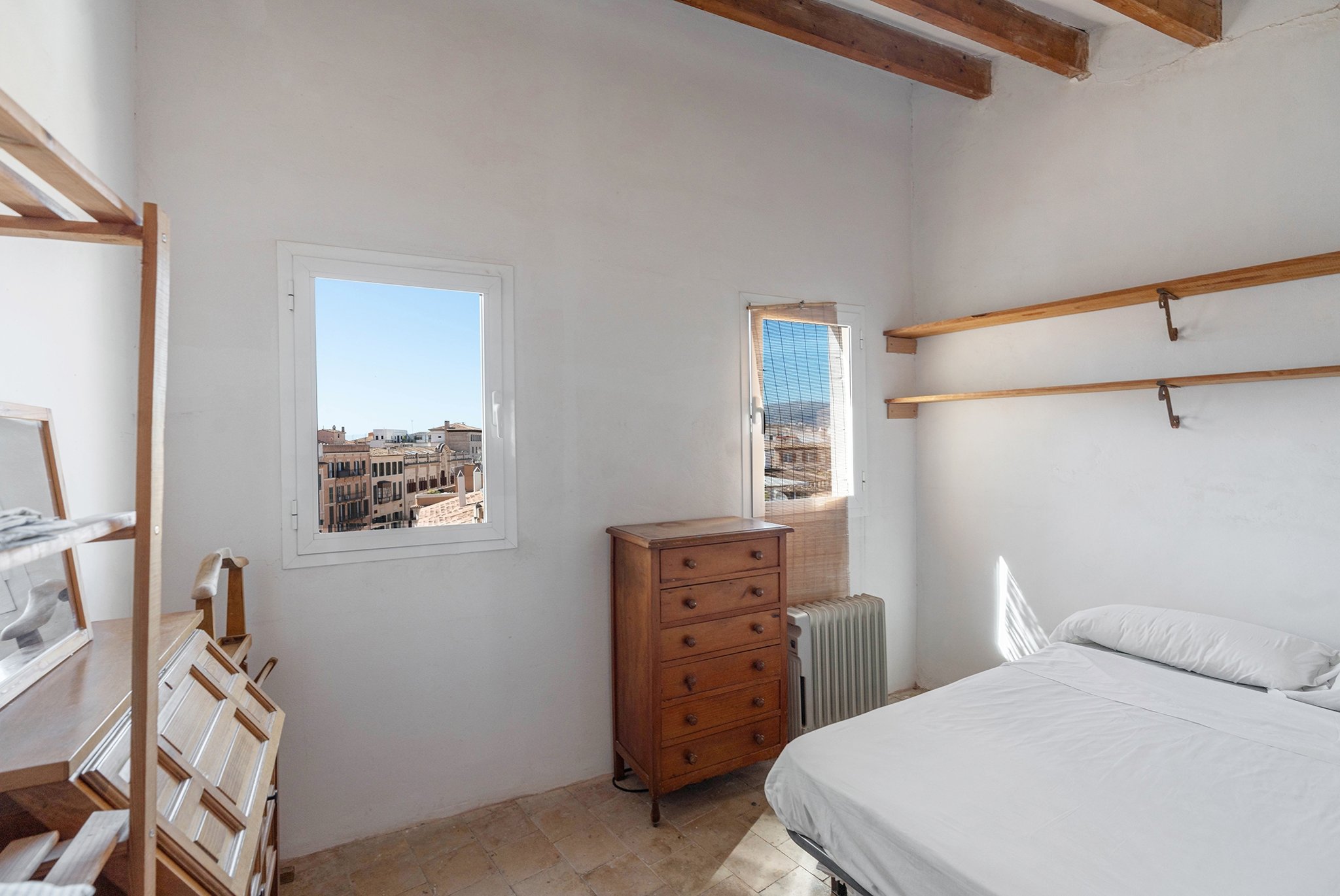 De båda sovrummen har plats för dubbelsäng och har båda vacker utsikt över staden. Mitt emellan sovrummen ligger badrummet, även det med fönster med utsikt över Palmas takåsar.