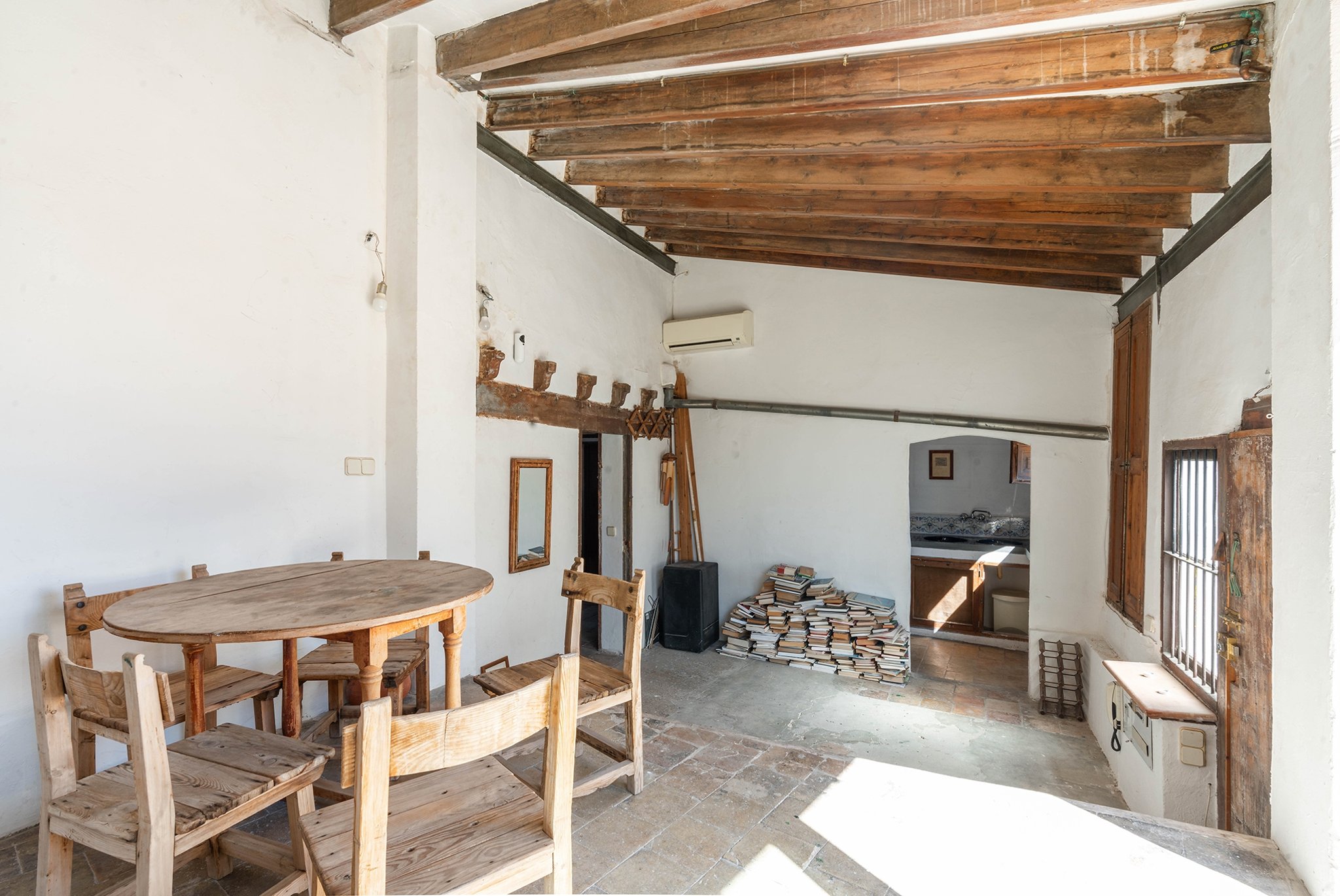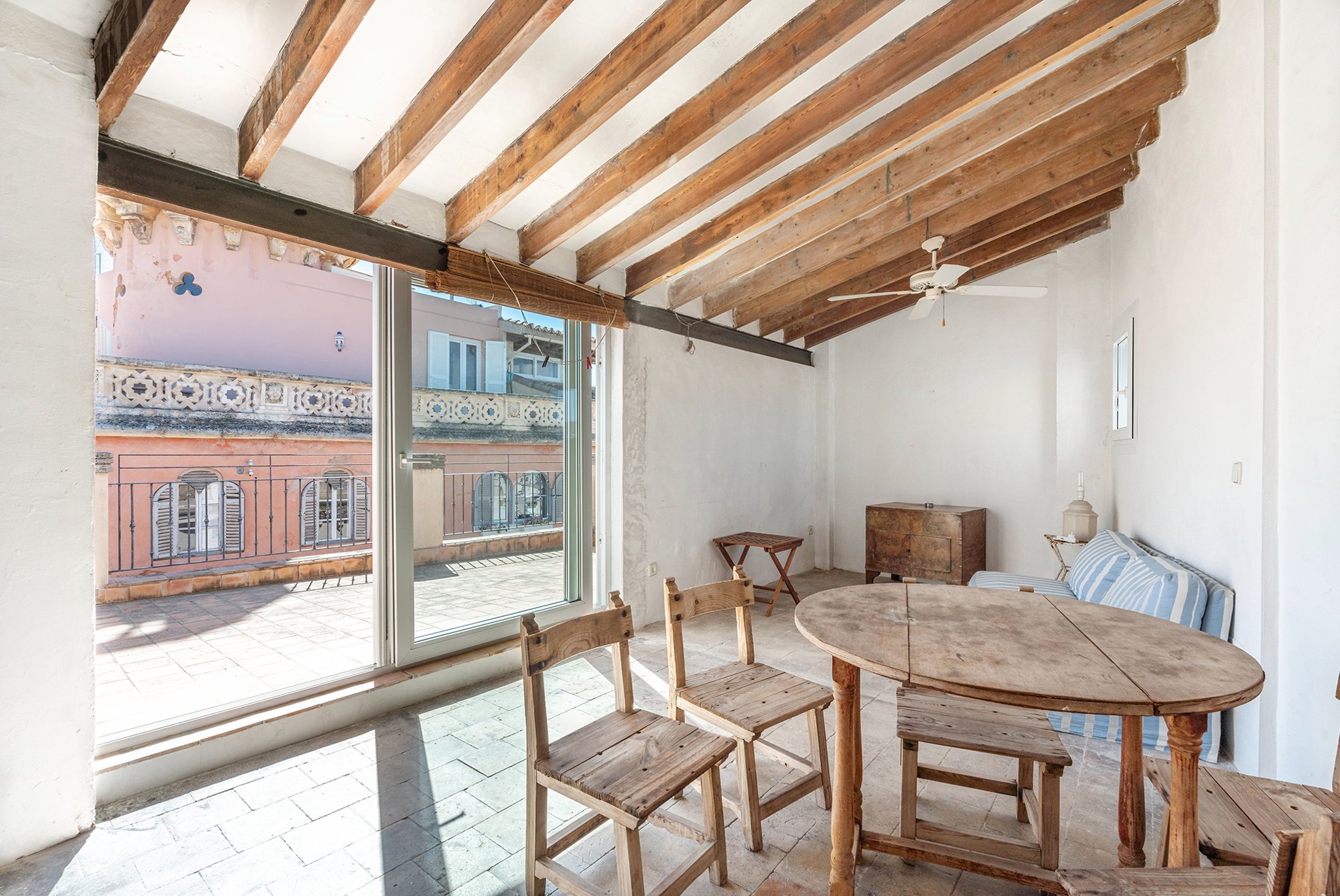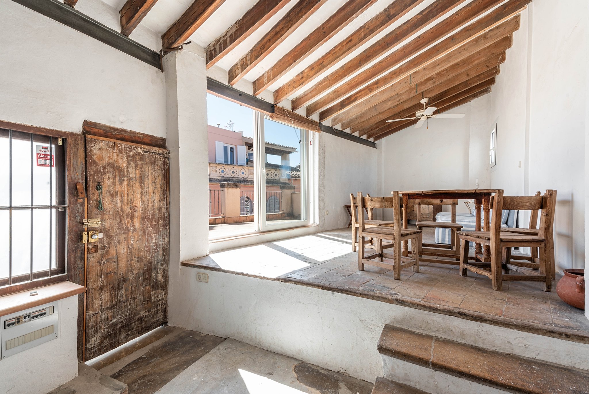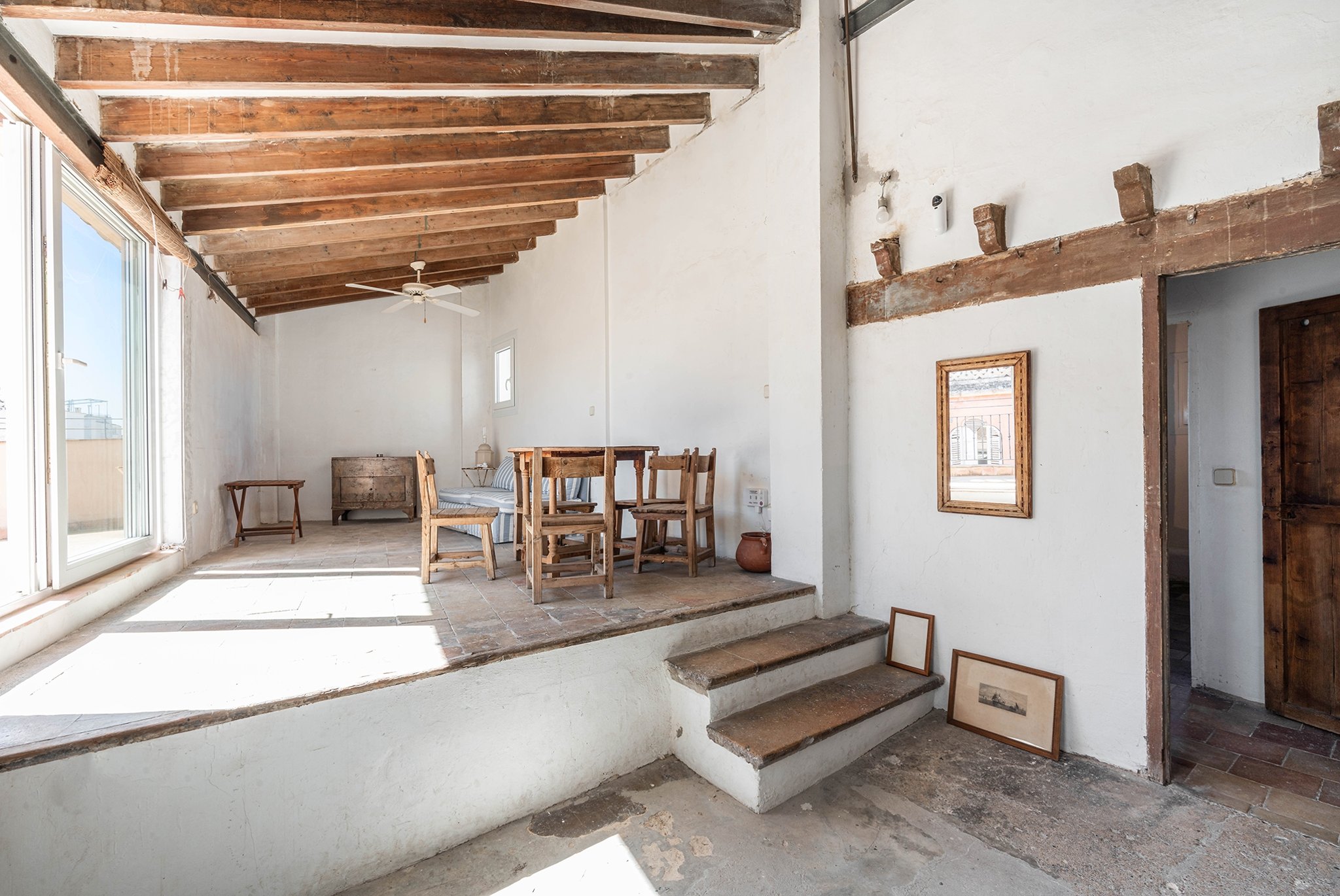Denna takvåning som ligger mitt på Plaza Cort i gamla stan är ett renoveringsobjekt av sällan skådat slag. Med en varsam renovering kan det här bli en drömvåning på bästa läge i Palma. Bostaden har en enorm charm, med högt i tak och synliga takbjälkar samt originalgolv.