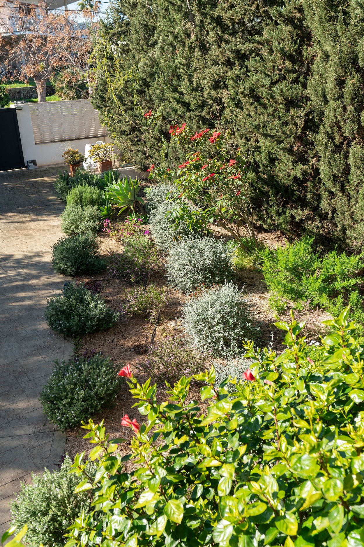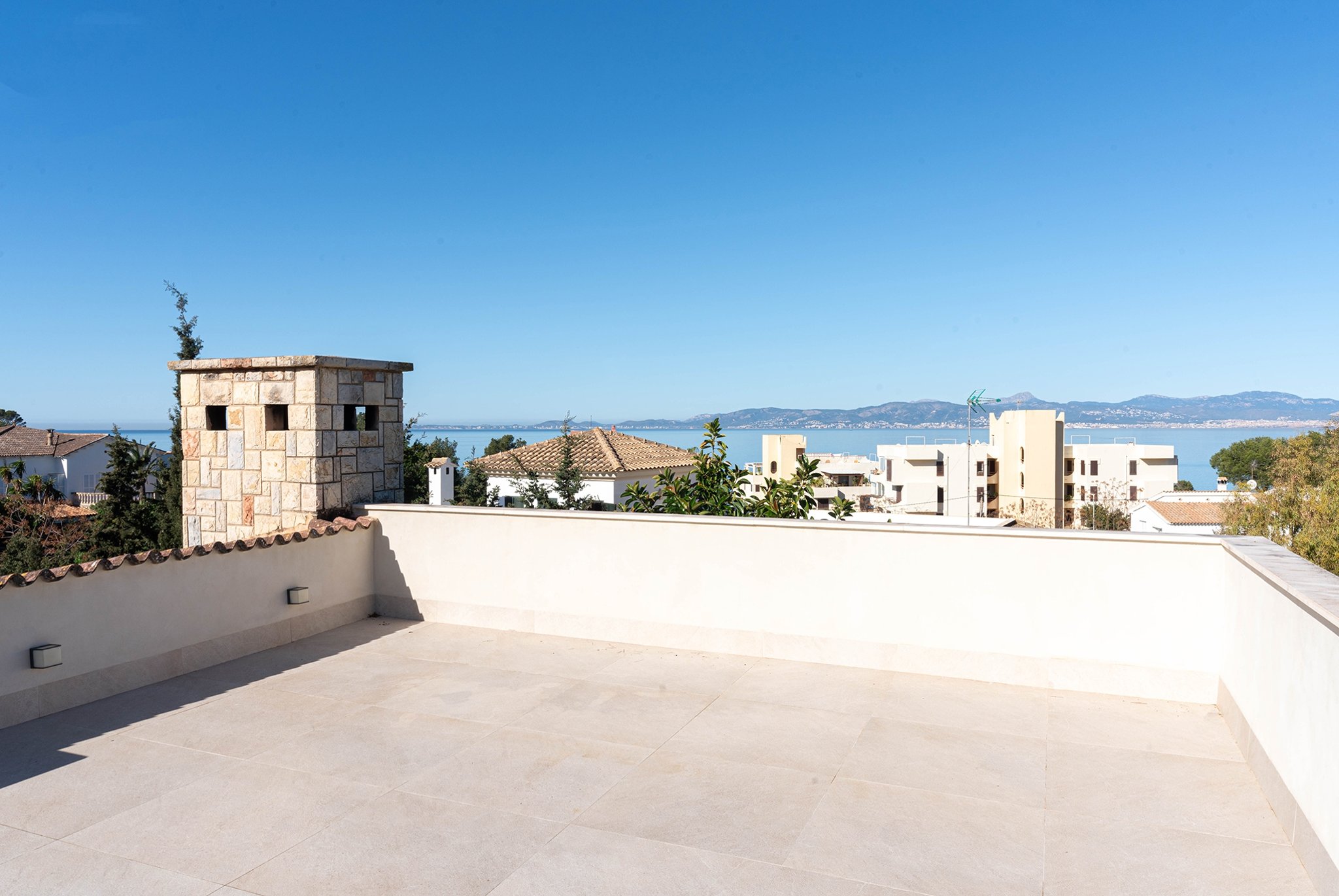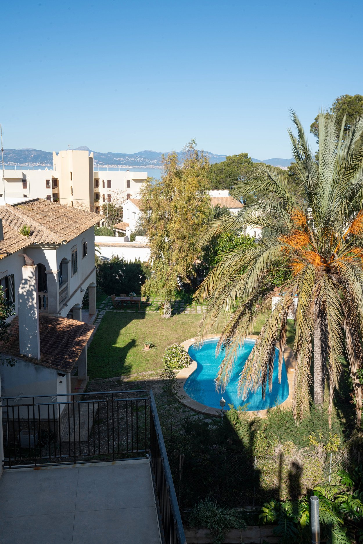 Trädgården på 489 m² är en härlig oas där du kan njuta av lugnet, grönskan och de natursköna omgivningarna. Från bakre terrassen leder en trappa upp till takterrassen, där du har en spektakulär utsikt över Palmabukten.