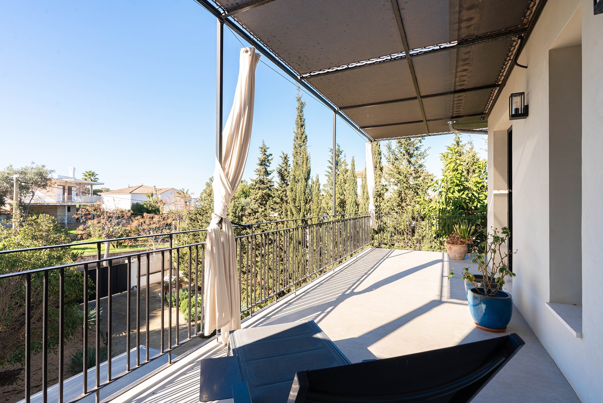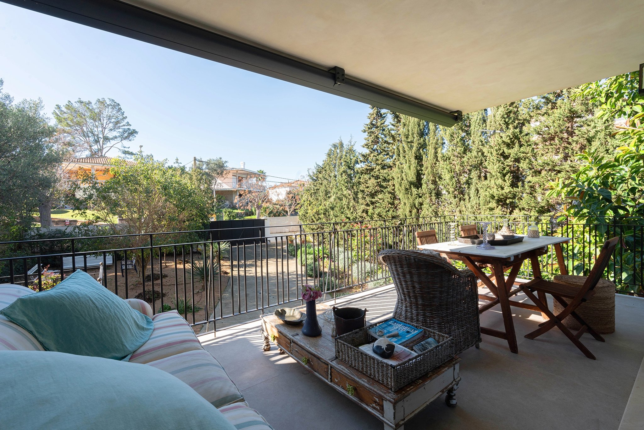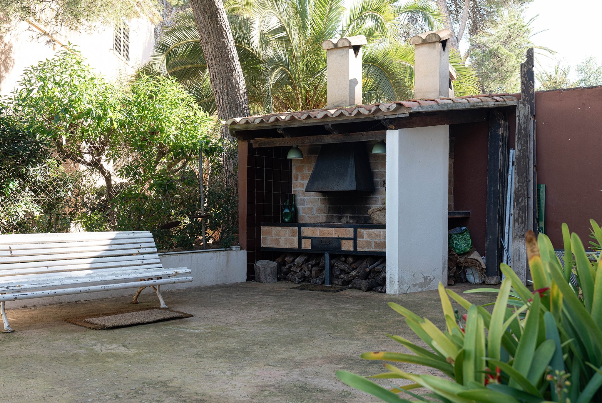 Trädgården på 489 m² är en härlig oas där du kan njuta av lugnet, grönskan och de natursköna omgivningarna. Från bakre terrassen leder en trappa upp till takterrassen, där du har en spektakulär utsikt över Palmabukten.