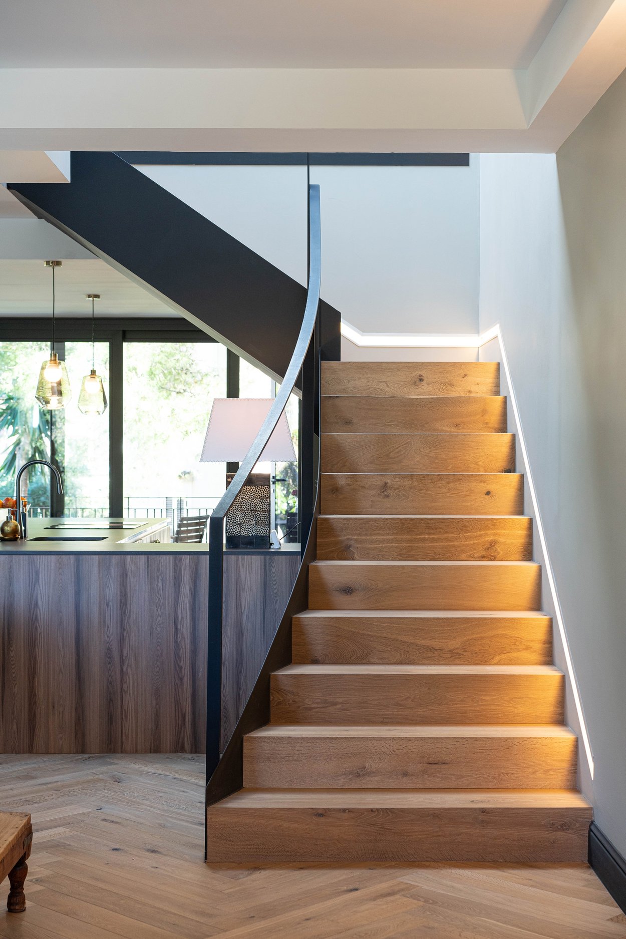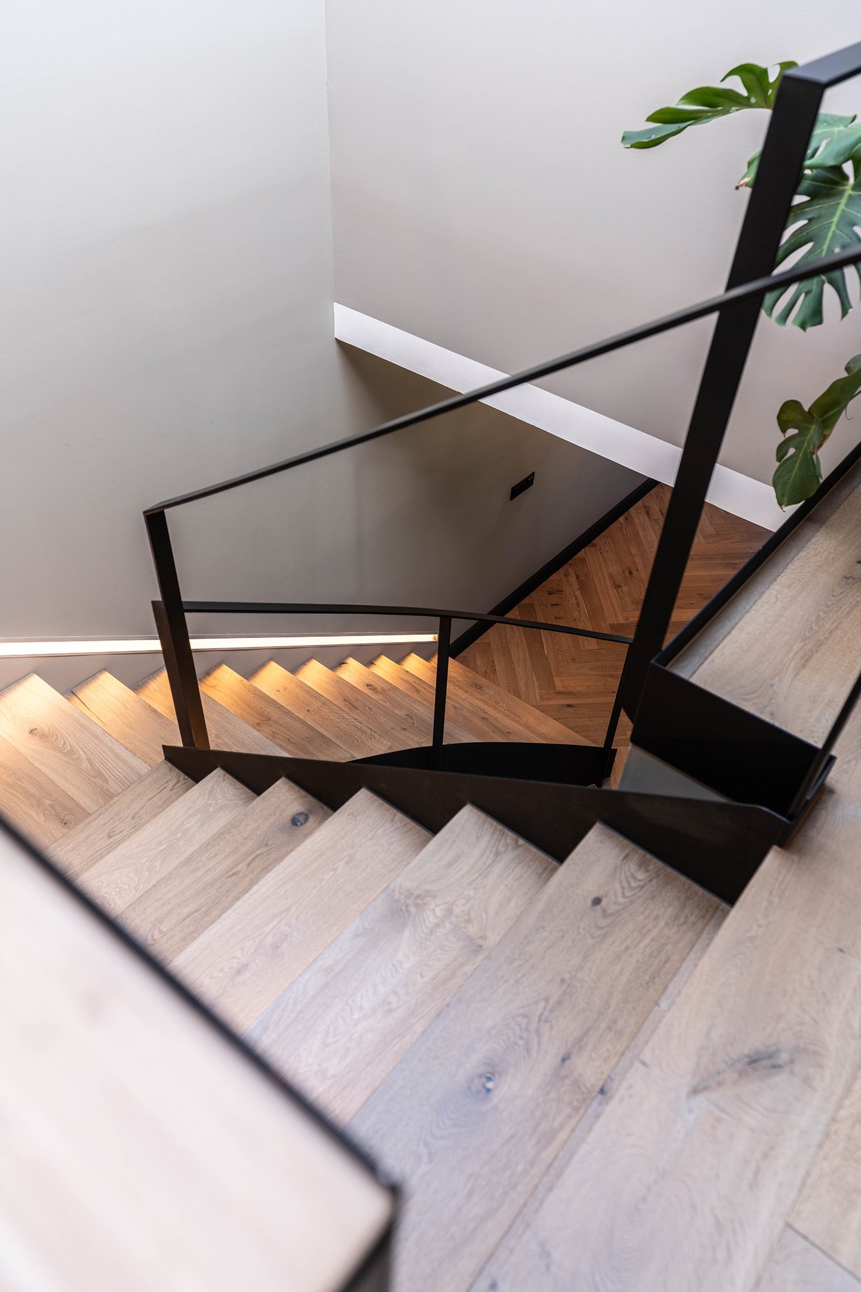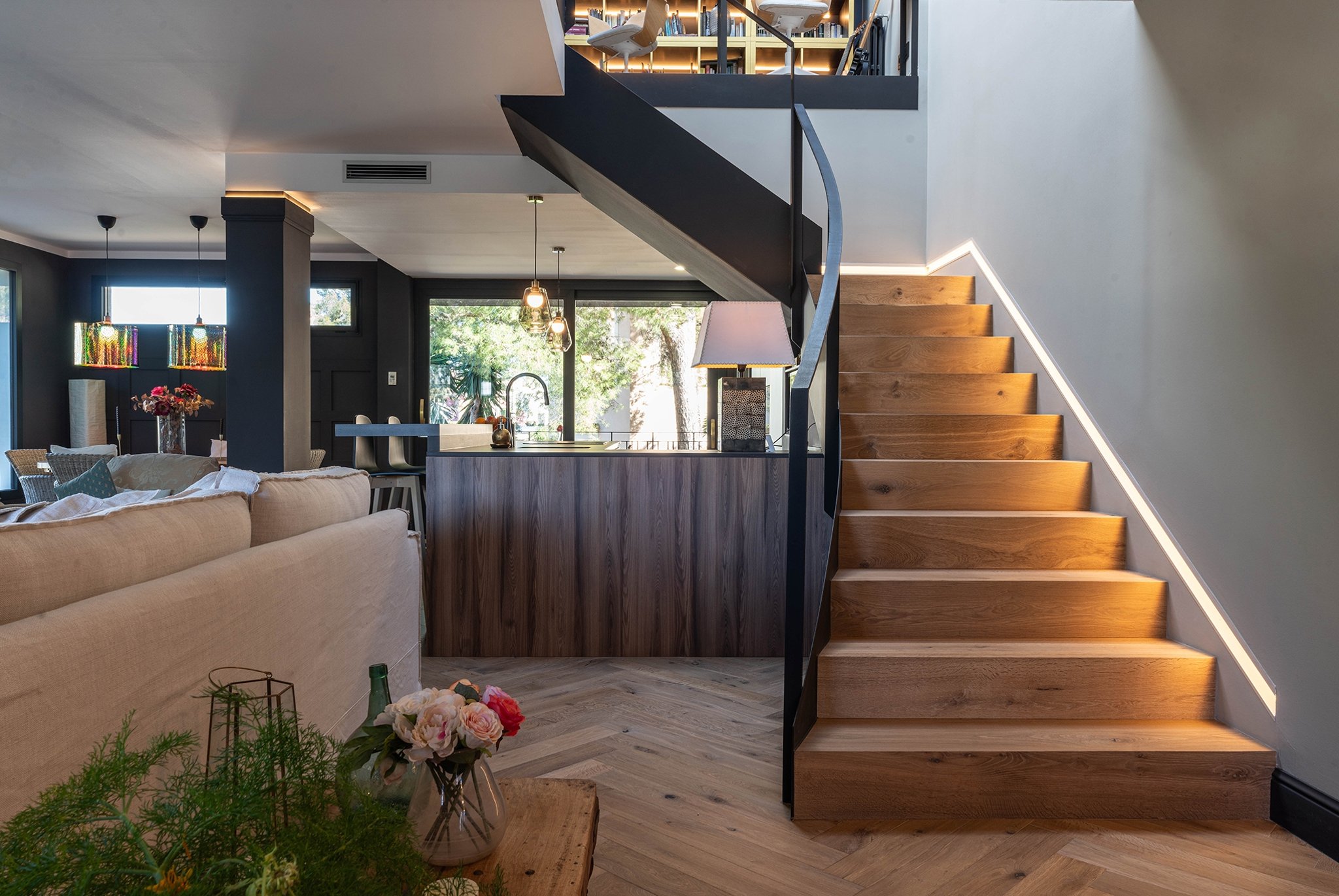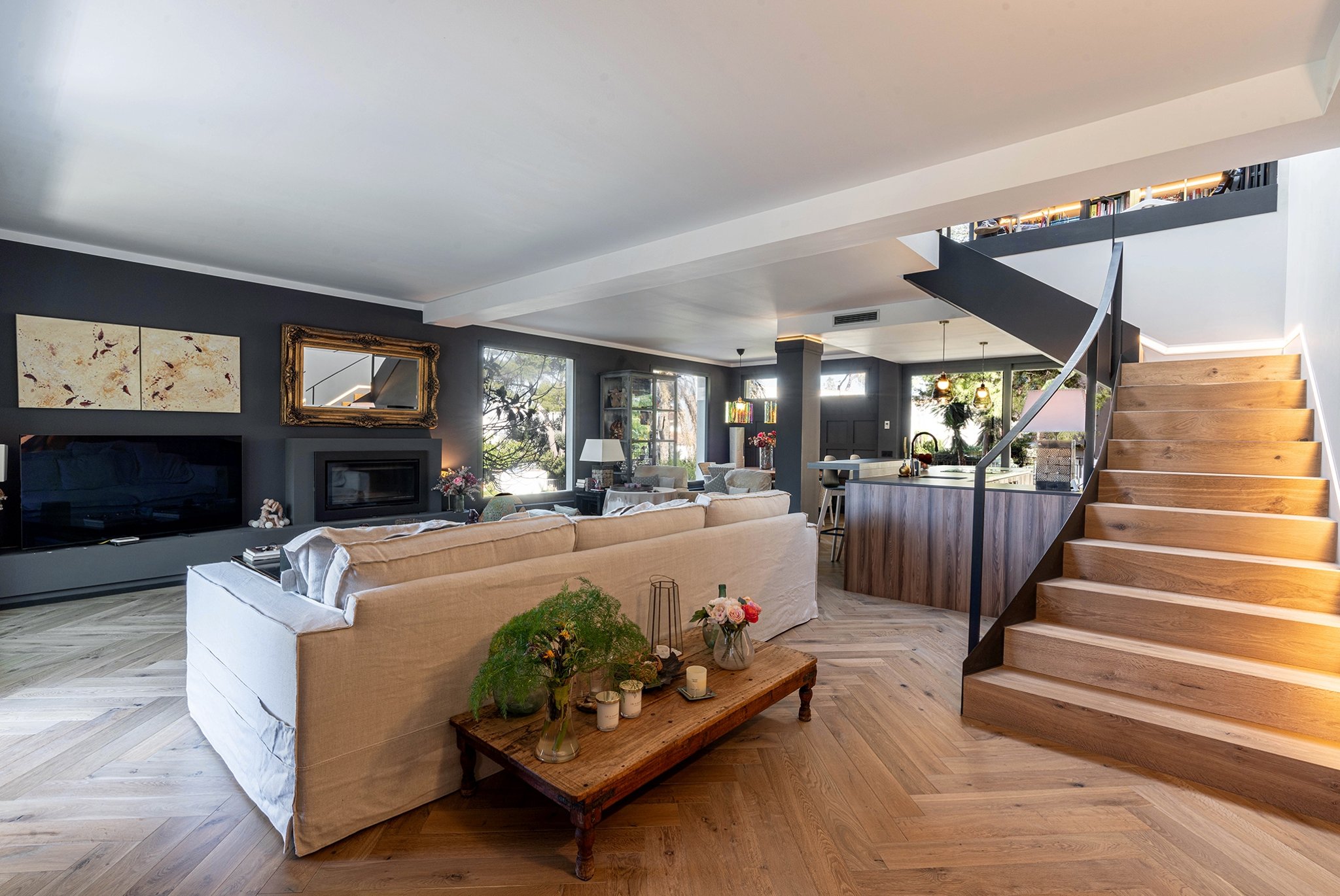 Huset är fördelat på tre våningar och har en generös boyta på 255 m². På entréplan möts du av en öppen planlösning med ett rymligt och ljust vardagsrum, matsal och kök, samt en gästtoalett. Härifrån har du även tillgång till två stora terrasser med utsikt över trädgården.