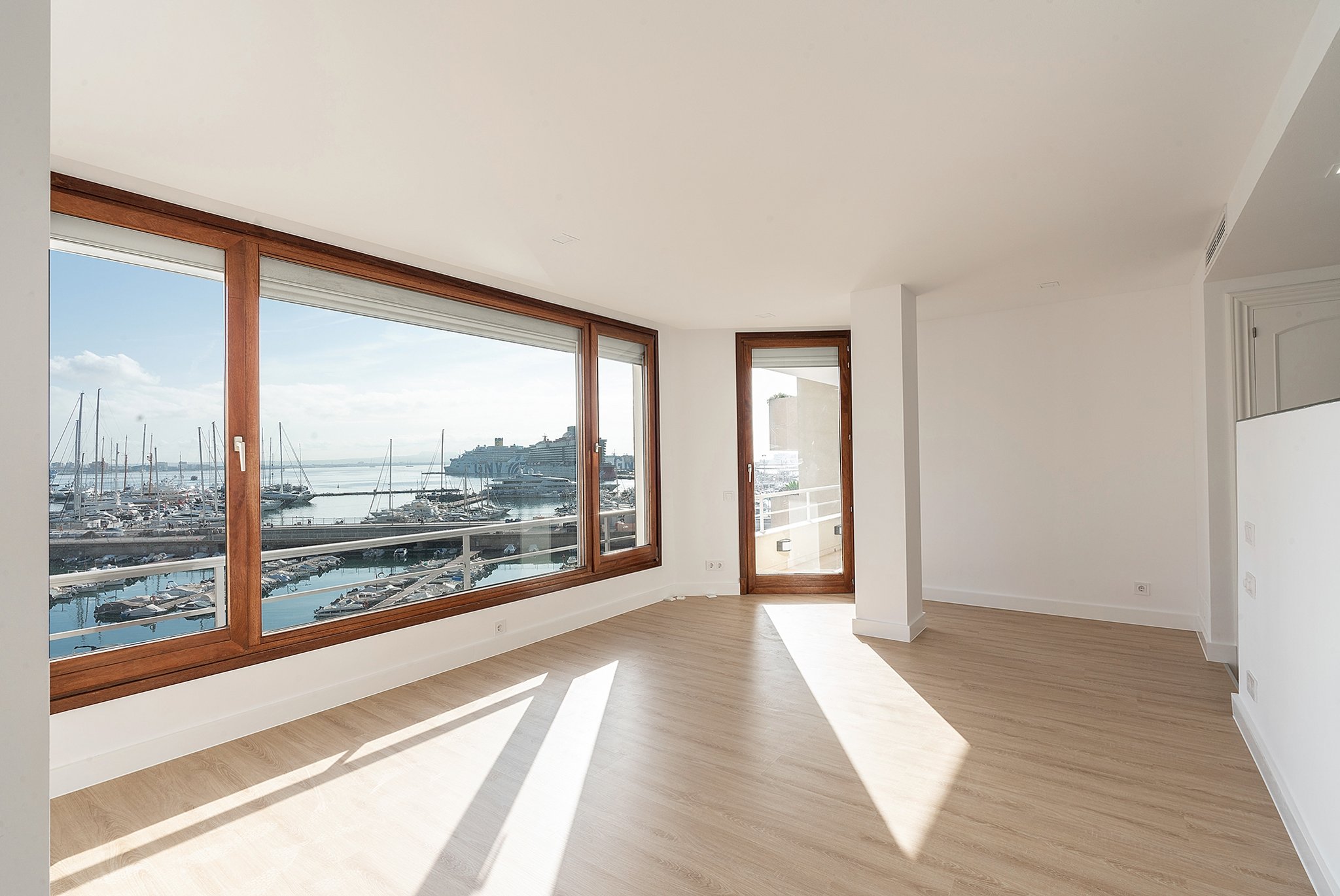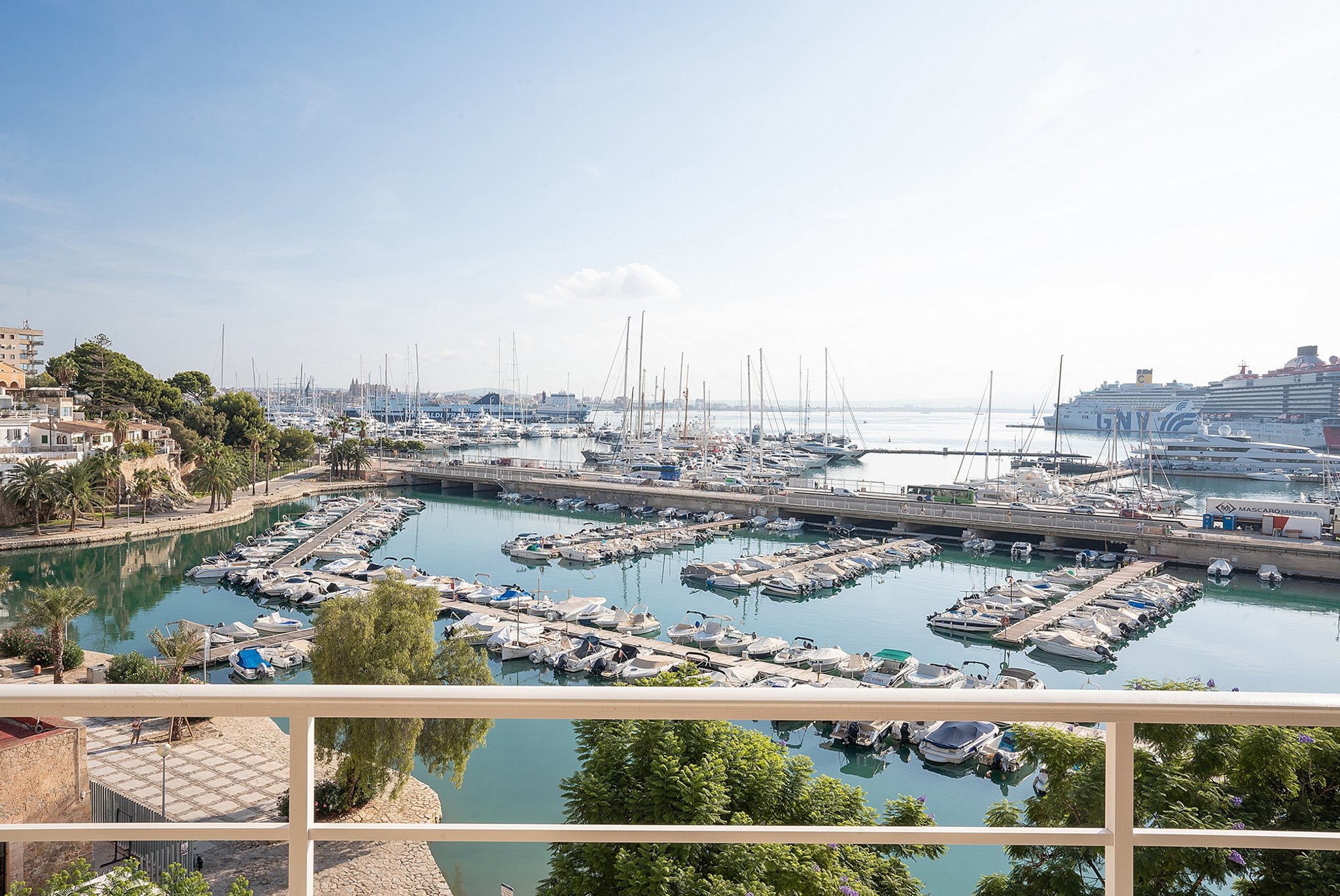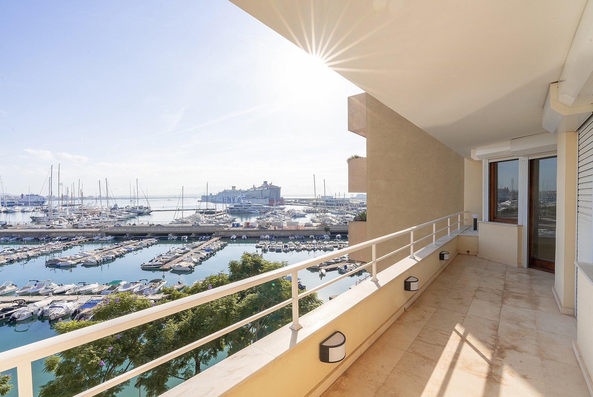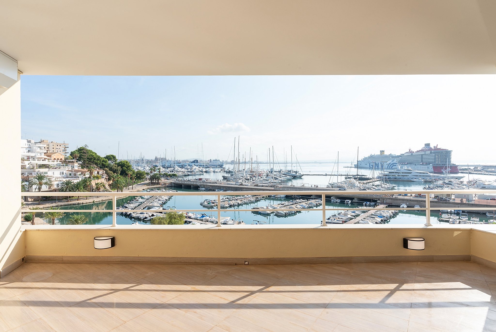 Denna moderna och högkvalitativa takvåning ligger i ett utmärkt läge med imponerande utsikt över hamnen och bukten i Palma. Det prestigefyllda vardagsrummet/matsalen har utsikt över hamnen och de stora fönstren garanterar gott om ljus. Det rymliga och högkvalitativa köket är en självklarhet i en fastighet som denna. Tre stora sovrum, alla med en-suite badrum, och ett litet sovrum garanterar utrymme för familj och vänner. Två balkonger på samma nivå som lägenheten och en gemensam takterrass med pool kompletterar detta erbjudande.