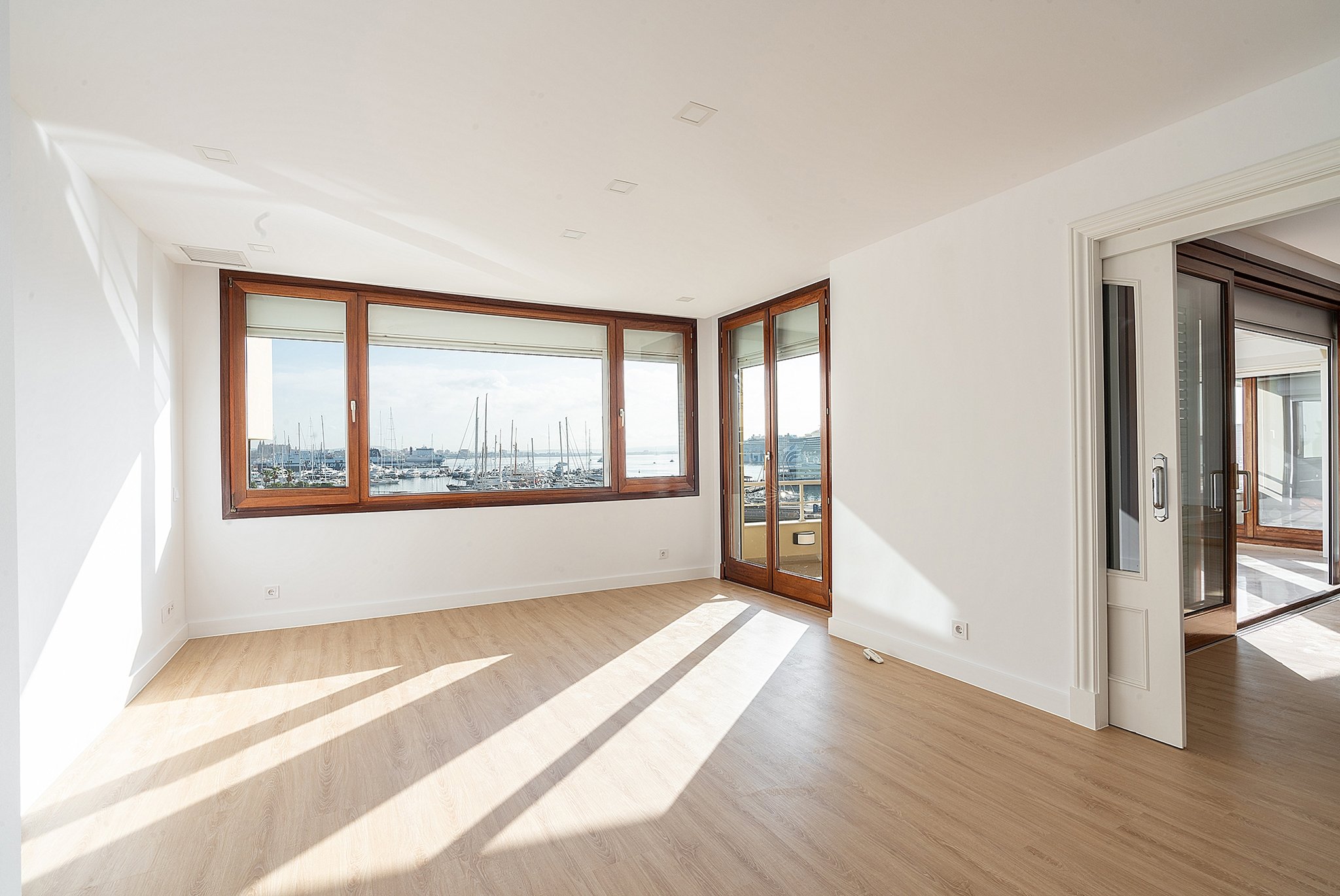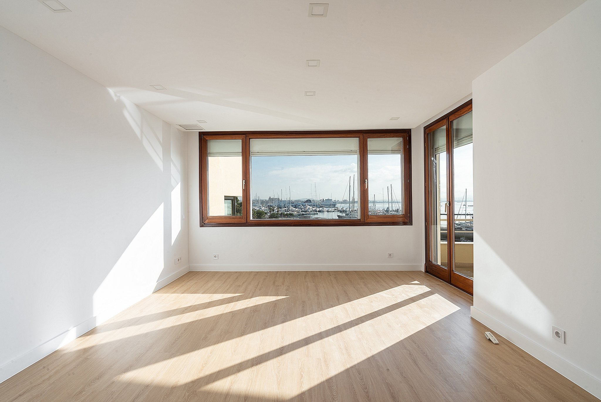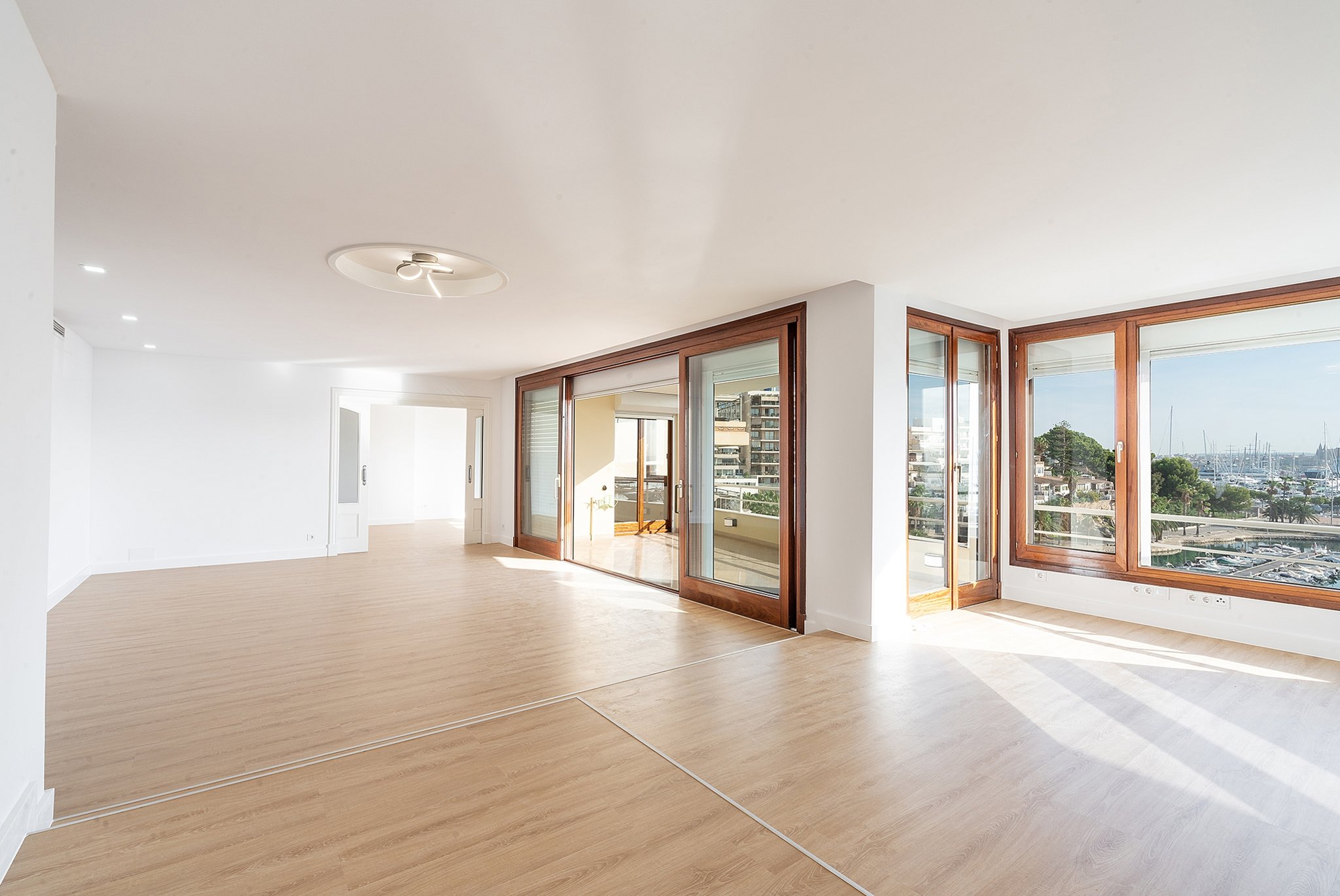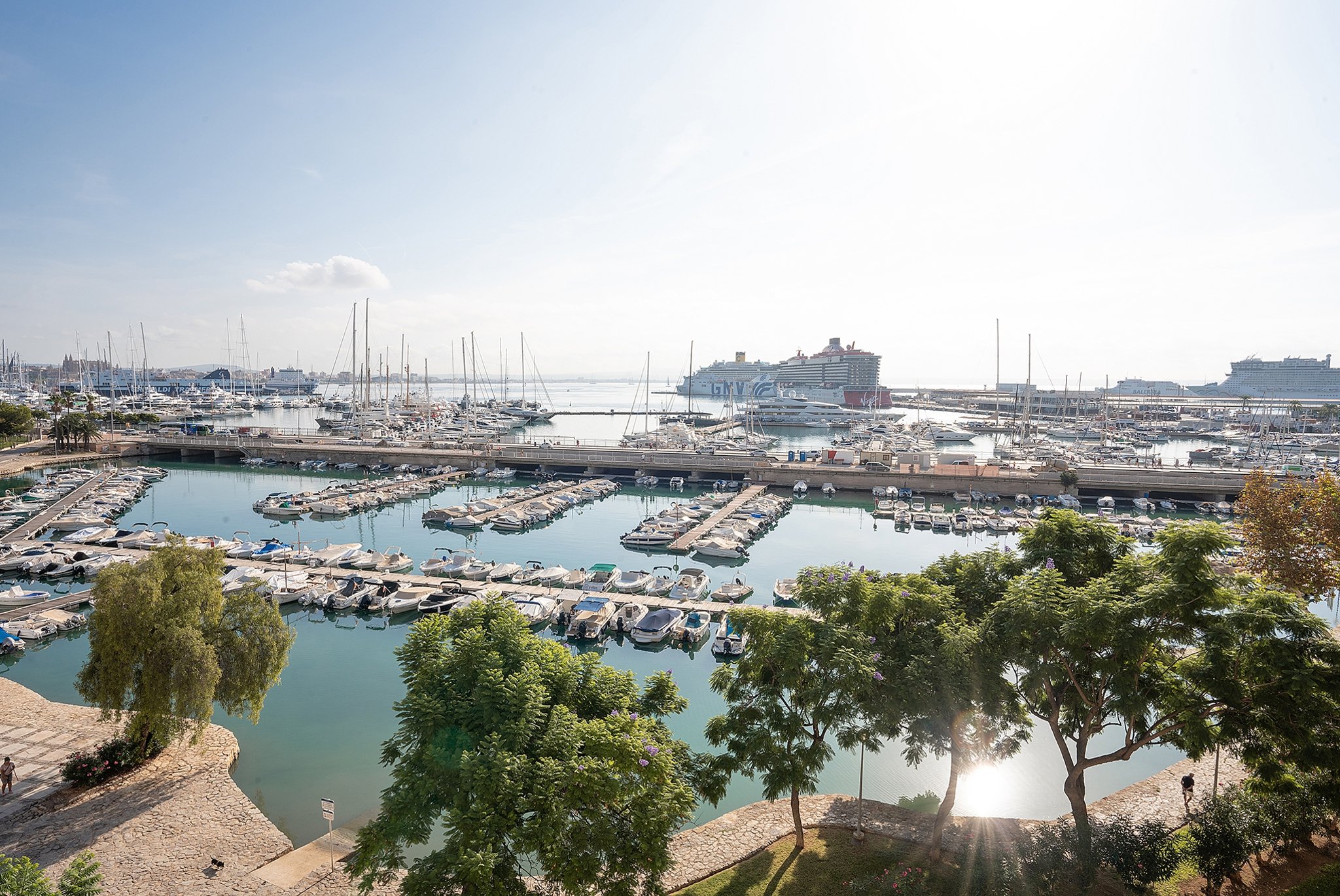 Denna moderna och högkvalitativa takvåning ligger i ett utmärkt läge med imponerande utsikt över hamnen och bukten i Palma. Det prestigefyllda vardagsrummet/matsalen har utsikt över hamnen och de stora fönstren garanterar gott om ljus. Det rymliga och högkvalitativa köket är en självklarhet i en fastighet som denna. Tre stora sovrum, alla med en-suite badrum, och ett litet sovrum garanterar utrymme för familj och vänner. Två balkonger på samma nivå som lägenheten och en gemensam takterrass med pool kompletterar detta erbjudande.