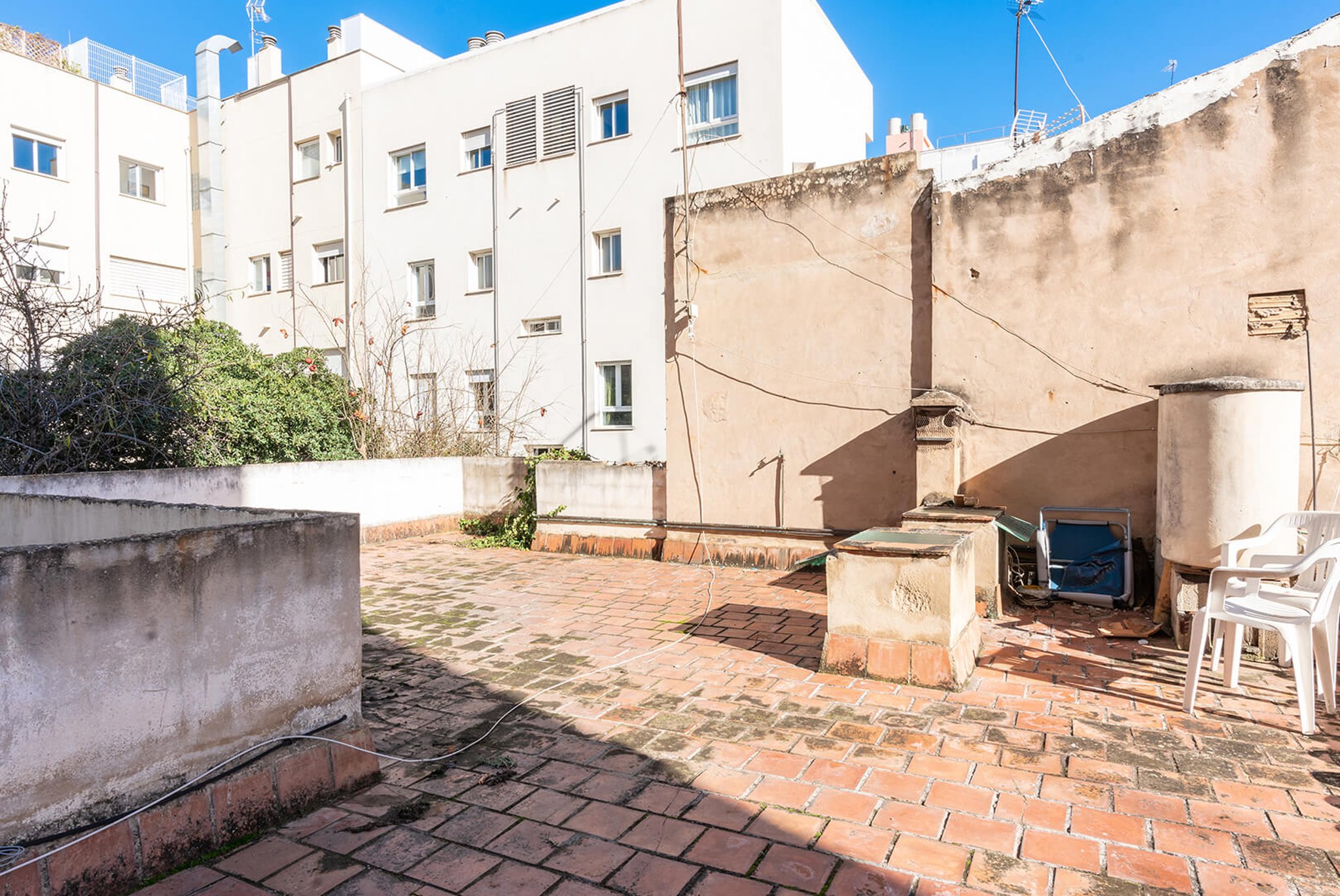 Huset har för närvarande en boyta på 120 m2. Huset har en fantastisk känsla och en stor trädgård där du har möjlighet att bygga en fin pool. Det finns en stor takterrass med många soltimmar. Detta är ett bra tillfälle att investera eftersom tomten också kan användas för att bygga ett nytt projekt. I så fall kan man bygga totalt 4 våningar, 3 våningar på 80 m2 och den översta våningen på 48 m2.