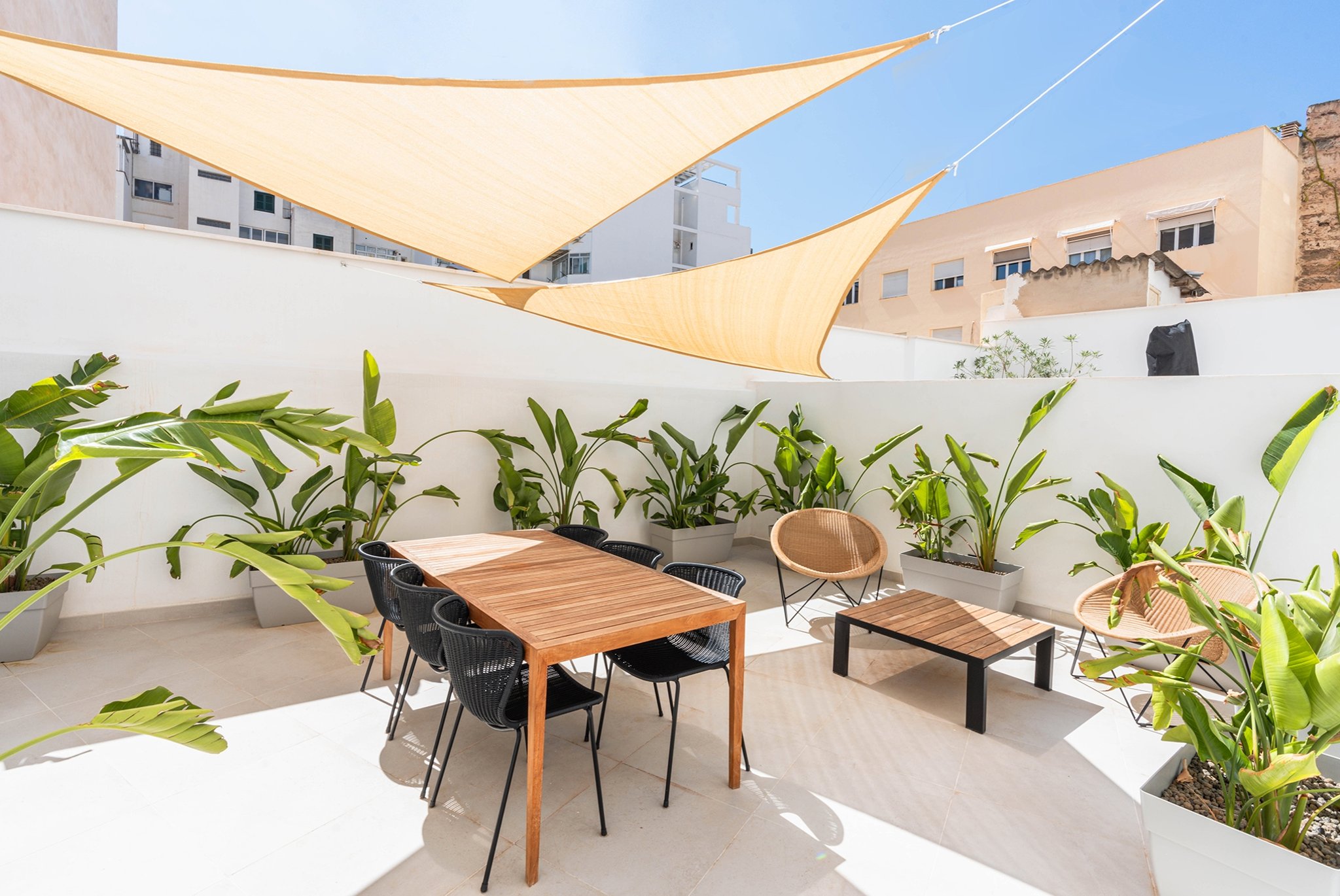 Denna nyrenoverade byggnad ligger på en gågata i hjärtat av Palma, mellan de livliga Avenidas och Pere Garau. Det är ett idealiskt område att bo, gångavstånd till Plaza España, centralstationen och marknaderna Olivar och Pere Garau. Gatan den ligger på, nyligen gågata, blir en mycket attraktiv plats i staden.