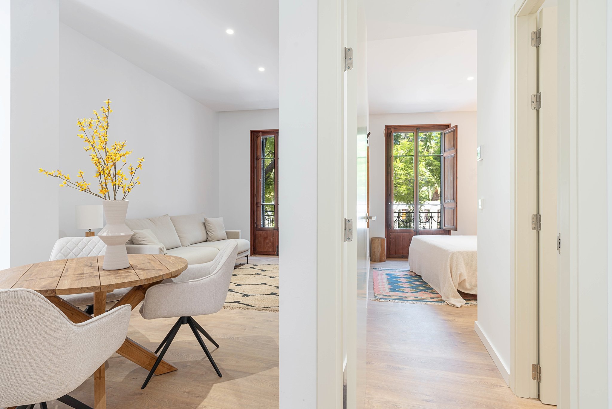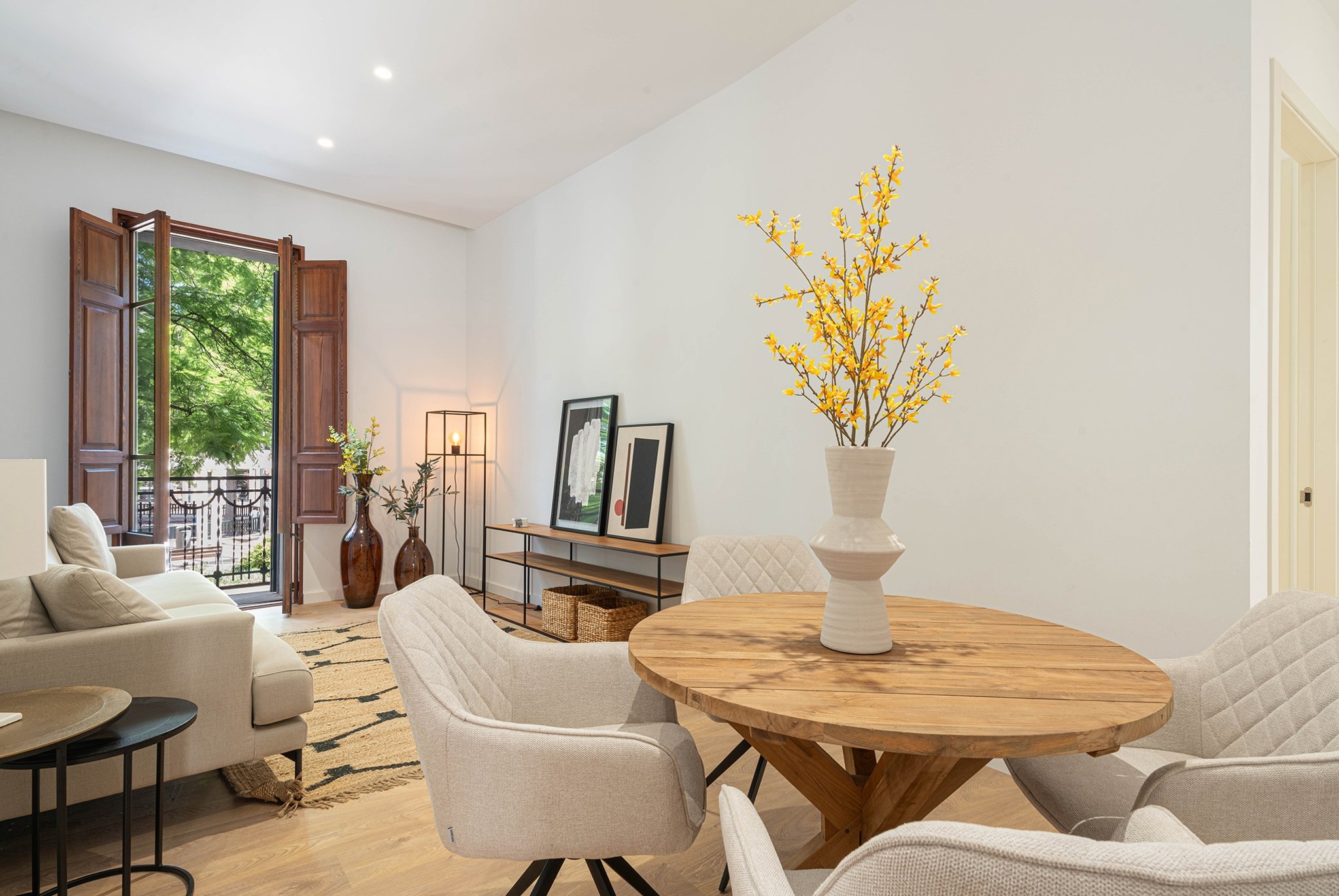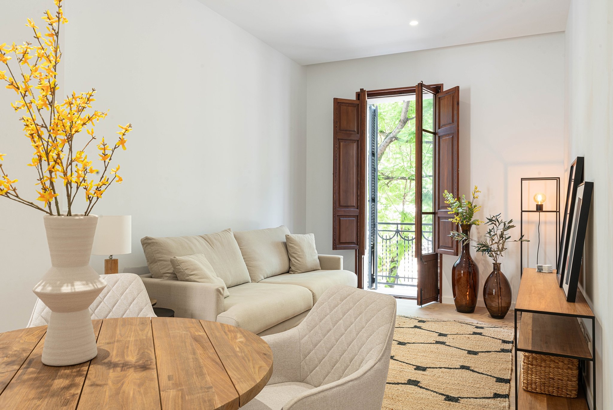 Denna unika utveckling utmärker sig genom en kosmopolitisk och urban stil, omsorgsfullt utformad för dem som värnar om kvalitet, komfort och en distinkt känsla i sina bostadsutrymmen. Detta omfattande renoveringsprojekt blandar skickligt klassisk prakt med modern excellens, vilket säkerställer att den emblematiska fasaden och de invecklade detaljerna bevaras samtidigt som de tillgodoser modern livsstil. Byggnaden är ursprungligen från 1935 och den fullständiga renoveringen av byggnaden har nu slutförts. Projektet består av 11 exklusiva lägenheter. Denna lägenhet har en boyta på 106 m2 plus en terrass på 32 m2. Den består av ett ljust vardagsrum med fullt utrustat kök, 3 sovrum och 2 badrum. Lägenheten säljs möblerad.